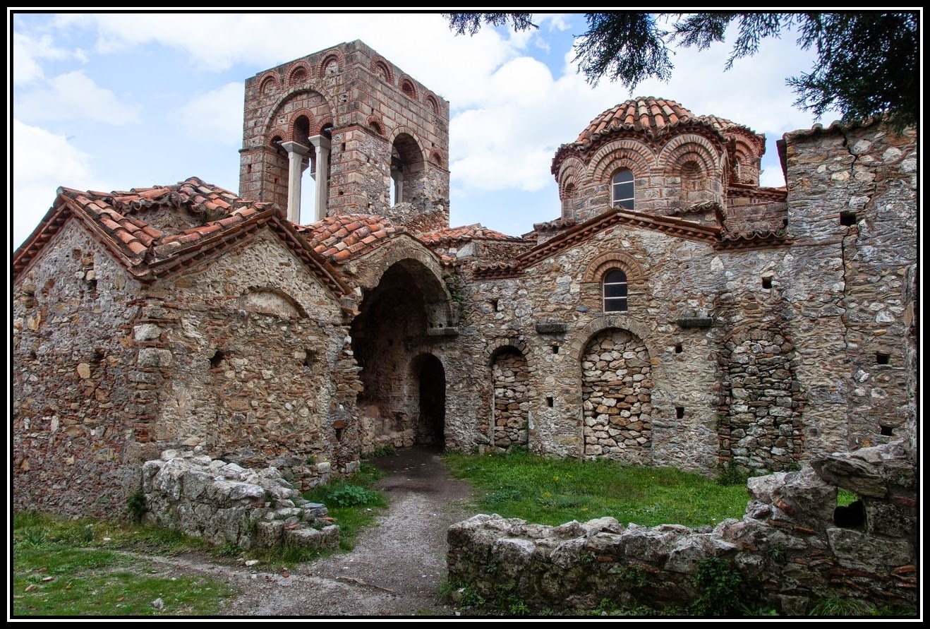 J'arrive en retard par rapport à mon planning à Mystrás (entrée supérieur). Il me reste 1h30 pour faire la visite. C'est sans perdre de temps que je grimpe jusqu'au fort et que je redescends aux bâtiments byzantins.